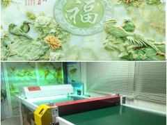 冰晶画设备批发、免费培训悬浮立体画、3D冰晶画、玉雕壁画背景墙,投资小风险低,厂家提货没有中间环节,费提供技术图库光盘,原材料厂家电话等等。通过ps软件处理喷绘图片,然后用全自动设备液压排气,UV光固化到玻璃上,制作快,效率高,成本低,投资小,无次品,不脱层、不褪色、防潮、防划,设备投资小,适合前期制作资金不足的商户经营,广泛用于衣柜门、书柜门、移动门、隔断墙、室内高档装饰、电视背景墙等,达到水晶所具有的高雅、晶莹剔透效果,具有画龙点睛的作用,极大满足了主人的家居品位,明显提高装饰档次。